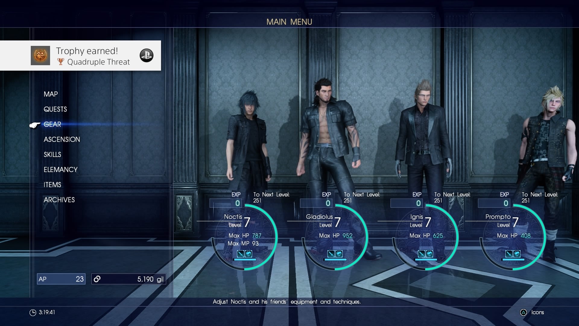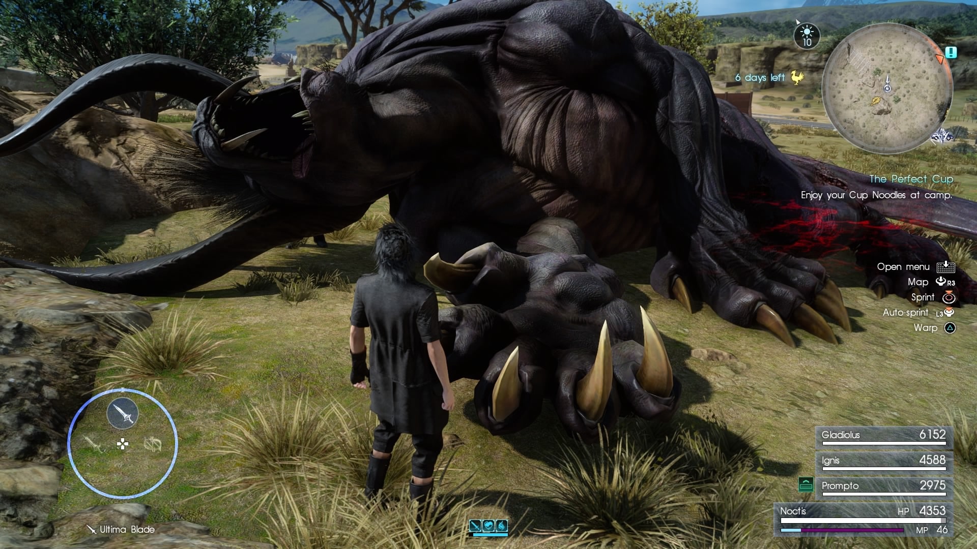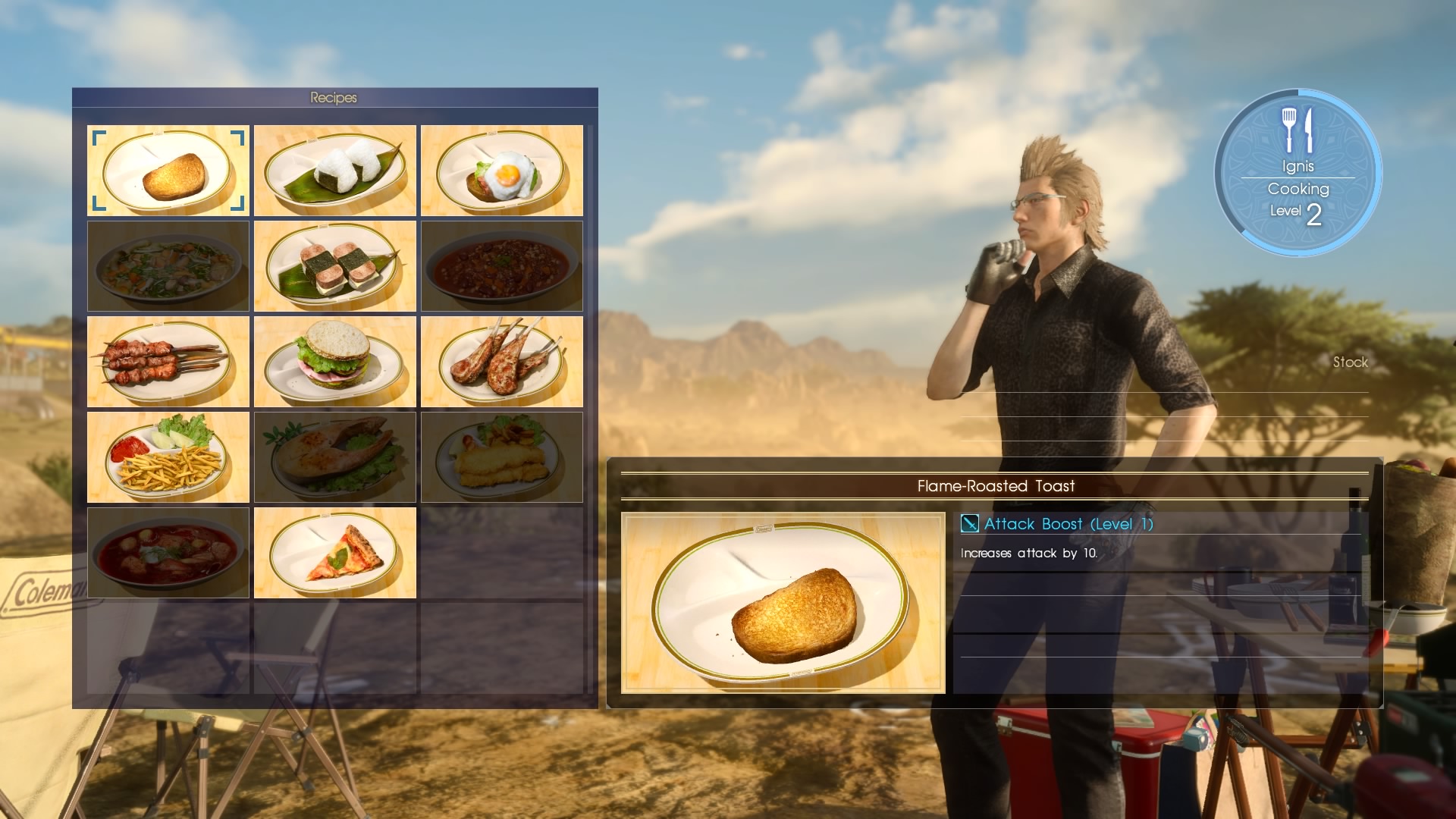 Pompto, Gladiolus aj Ignis sú každý dosť odlišný a majú svoje vlastné techniky v boji, ako aj vlastné hobby. Ignis je hlavný kuchár, Gladiolus sa stará o kemping a Prompto miluje fotky. Noctis zase rád loví ryby. Mimochodom, tomu, komu vo vývojárskom tíme napadlo dať Promptovi foťák má u mňa hlbokú poklonu. Najbrilantnejší nápad! Nielen, že máte tak svoje vlastné fotky z hry, ale tie sú naozaj jedinečné pre každého hráča. Samozrejme, je tu pár preddefinovaných fotiek, ktoré bude mať každý rovnaké, ale okrem toho Prompto zachytí rôzne momenty z boja alebo len tak počas putovania. Niektoré fotky sú naozaj unikáty a ani ste si nevšimli, kedy ich ten huncút spravil. I keď no, asi by ste mu stále nemuseli bežať počas boja na pomoc, keby ten foťák nachvíľku pustil z ruky. Tieto schopnosti sa postupne levelujú až do úrovne 10, takže sa postupne odomykajú rôzne výhody pre každého. Od nových receptov pre Ignisa až po odlišné filtre na fotky pre Prompta.